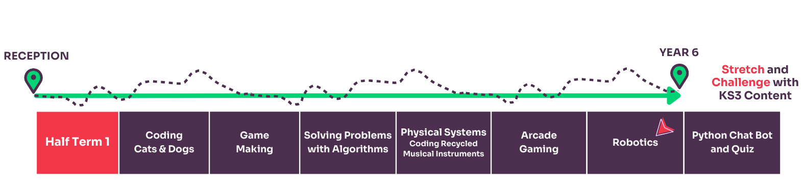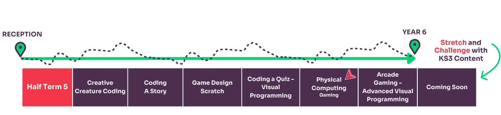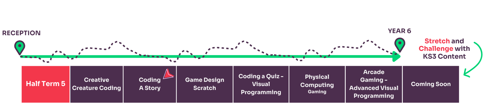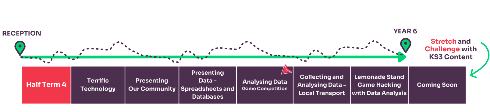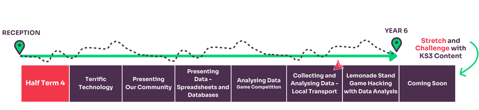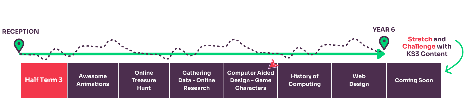 In order to understand which unit of work your class should learn each half term, you can use the Curriculum Creator Tool below by following these steps: